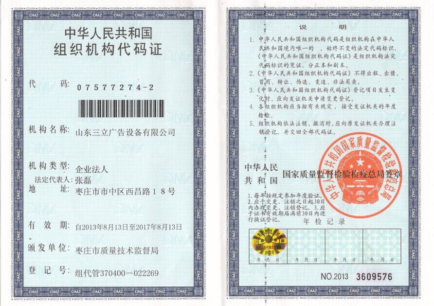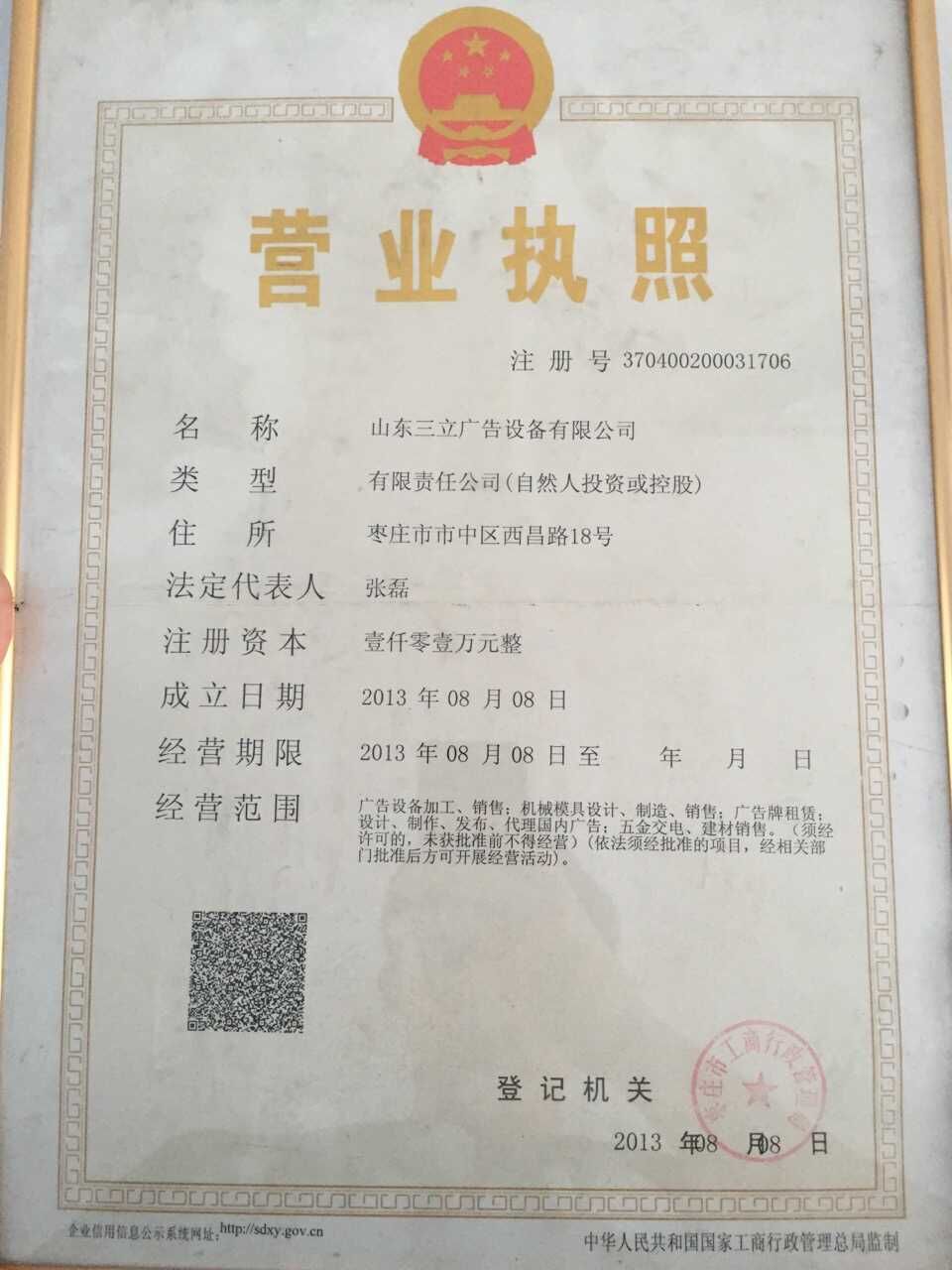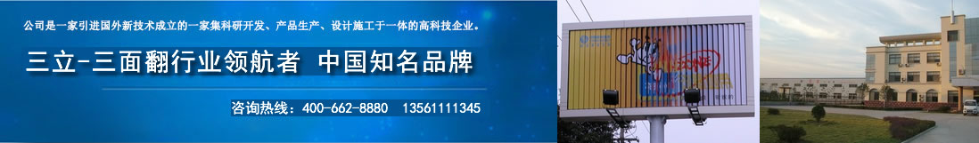 三立廣告設(shè)備有限公司是一家以及開(kāi)發(fā)、設(shè)計(jì)、生產(chǎn)三面翻廣告牌和戶外廣告設(shè)備的生產(chǎn)企業(yè)。 目前公司擁有一套完善的現(xiàn)代化企業(yè)管理制度和獨(dú)具特色的企業(yè)文化機(jī)制,在倡導(dǎo)人性化管理,"以人為本"的經(jīng)營(yíng)管理模式下,公司日益壯大,產(chǎn)品質(zhì)量不斷提升。