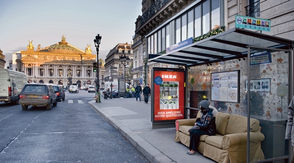 宜家法國公司把公交車站臺變成了自己產(chǎn)品的展示區(qū),連沙發(fā)上的價格成分標簽都沒有拿走。