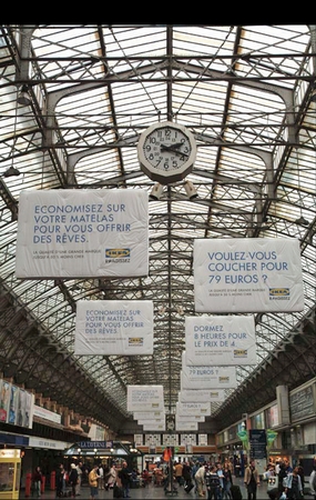 宜家法國公司還嘗試過地鐵站臺和火車站,他們把后者的廣告牌替換成了自己的床墊。